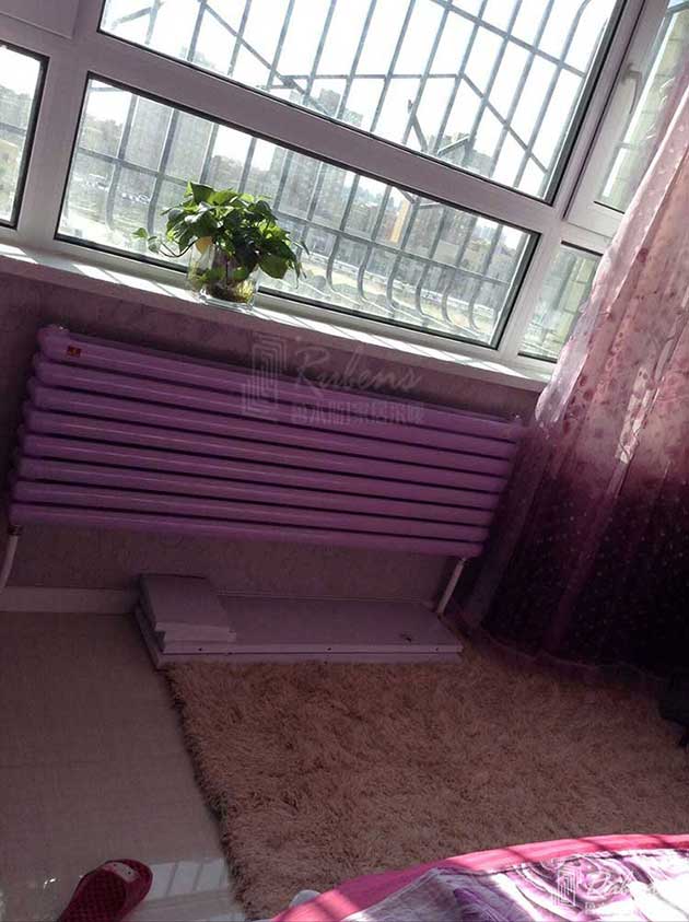 窗台下橫裝紫羅蘭色暖氣片安裝效果圖