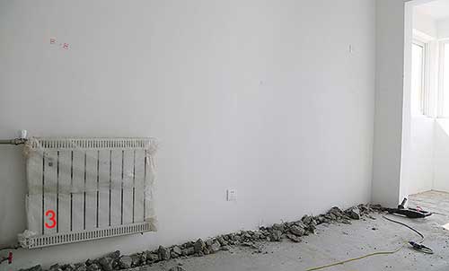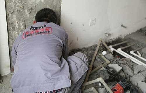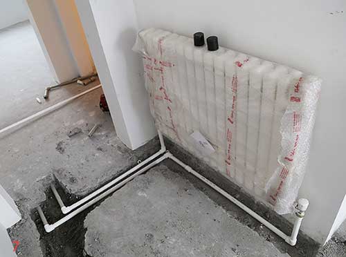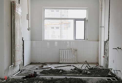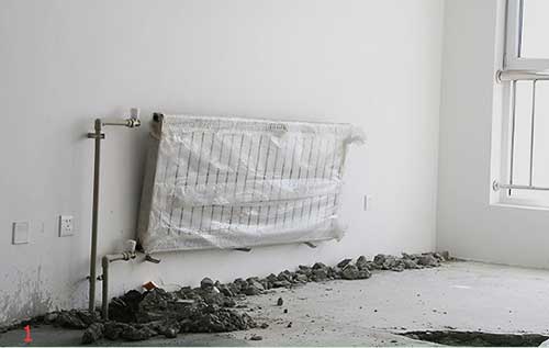 接下來裝修流程開始,首先要改造水暖,開發商標配的