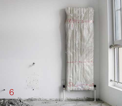 圖5所示,這是房產商標配的鋼鋁複合暖氣片,普及一下知識,鋼鋁材質的暖氣片走水管道細,容水量少,未做內防腐處理,熱衰減現象嚴重,91视频APP污下载從圖片中就能明顯看出有磕碰、腐蝕甚至漆麵都不光滑,質量可見一斑。