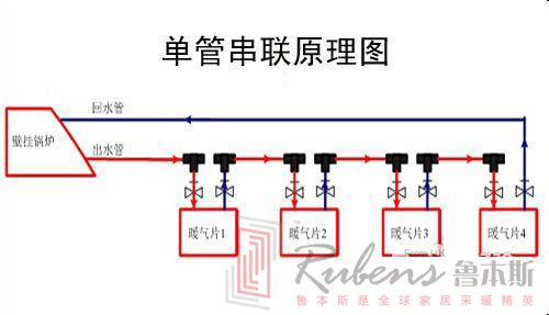 優點:暖氣片串聯比較節省材料,隻需要一根管子,安裝成本較低,節省空間;